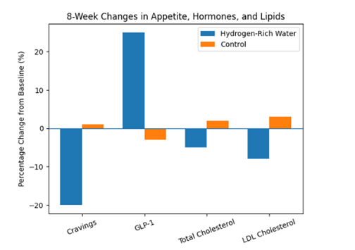 Reference: Todorovic N, Baltic S, Nedeljkovic D, et al. The Effects of 8-Week Hydrogen-Rich Water Consumption on Appetite, Body Composition, Sleep Quality, and Circulating Glucagon-like Peptide-1 in Obese Men and Women (HYDRAPPET): A Randomized Controlled Trial. Medicina (Kaunas). 2025;61(7):1299. Published 2025 Jul 18. doi:10.3390/medicina61071299